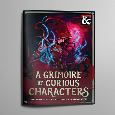 The team behind a "Grimoire of Curious Characters" wanted an interior layout that highlighted a vibrant character cast and put the look and feel of a fantasy RPG setting at the forefront.